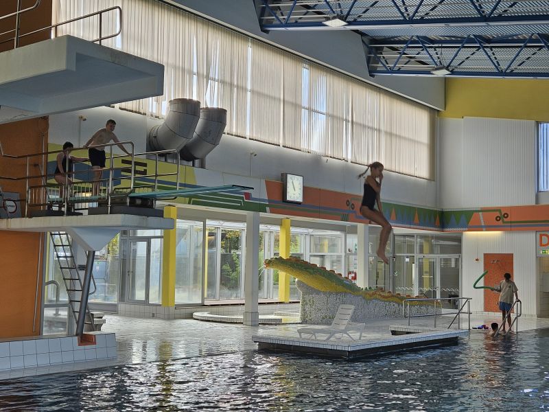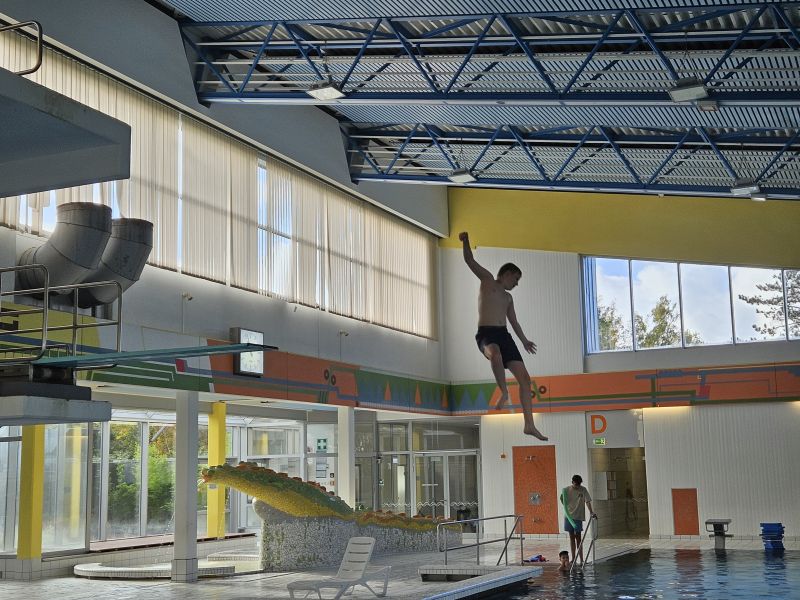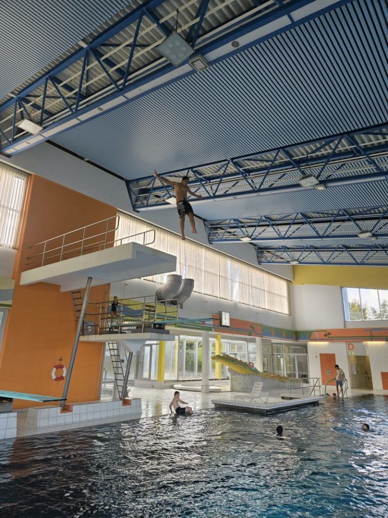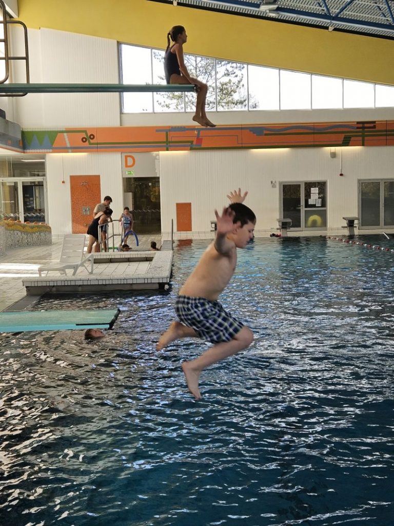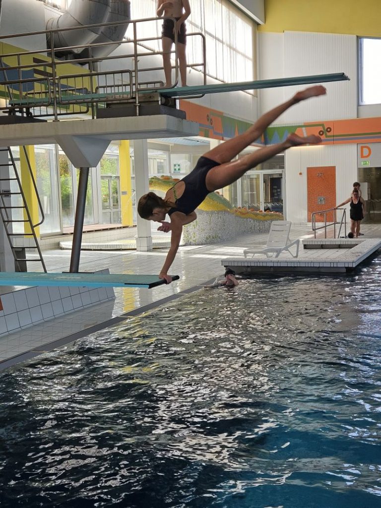 Anschließend ging es rüber zum Sprungturm, wo einige Schüler ihren Mut und ihr Können beim Turmspringen unter Beweis stellten.