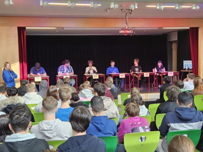 Moderiert wurde die Diskussion von der SV-Verbindungslehrerin Frau Gietz und dem Schulleiter Herr Hermanns.