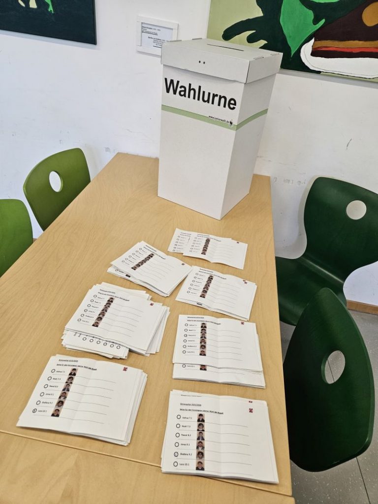 Dafür wurden heute bereits einige Szenen im Wahlbüro und von der Stimmenauszählung gedreht. Demnächst folgen noch Interviews und ein Besuch in der SV-Versammlung.