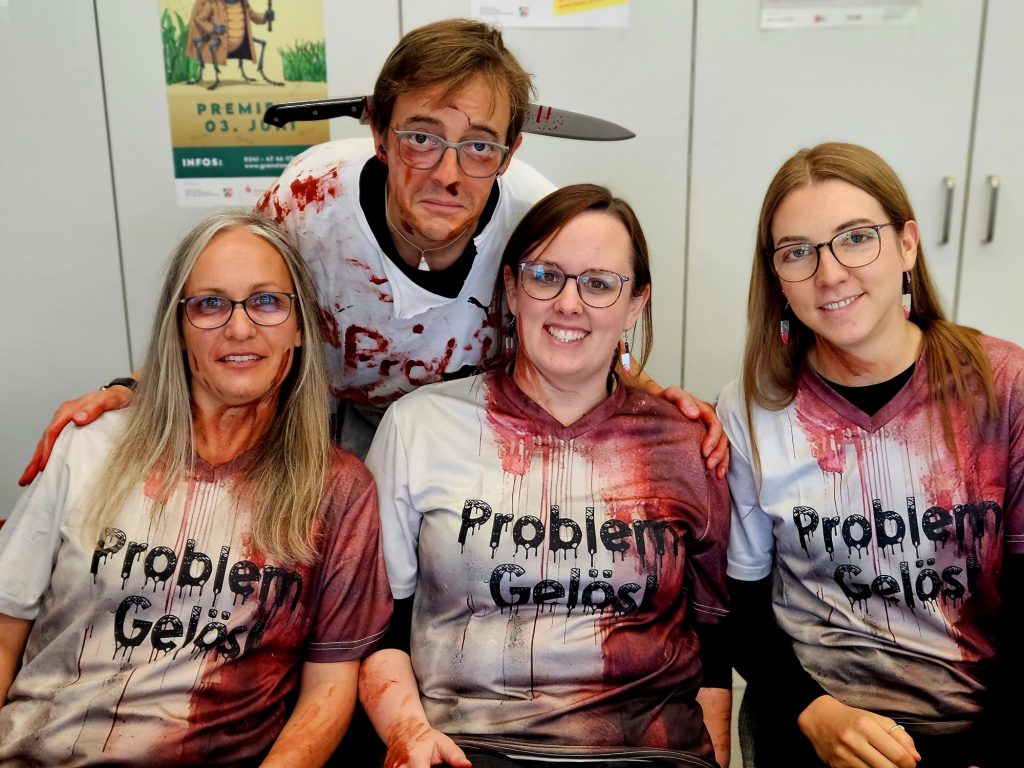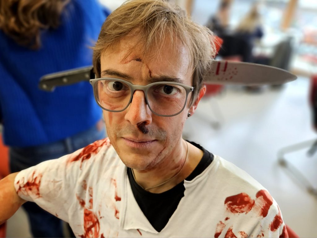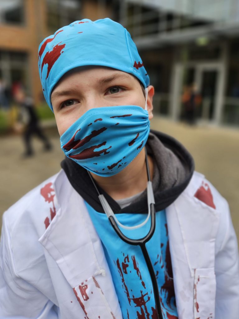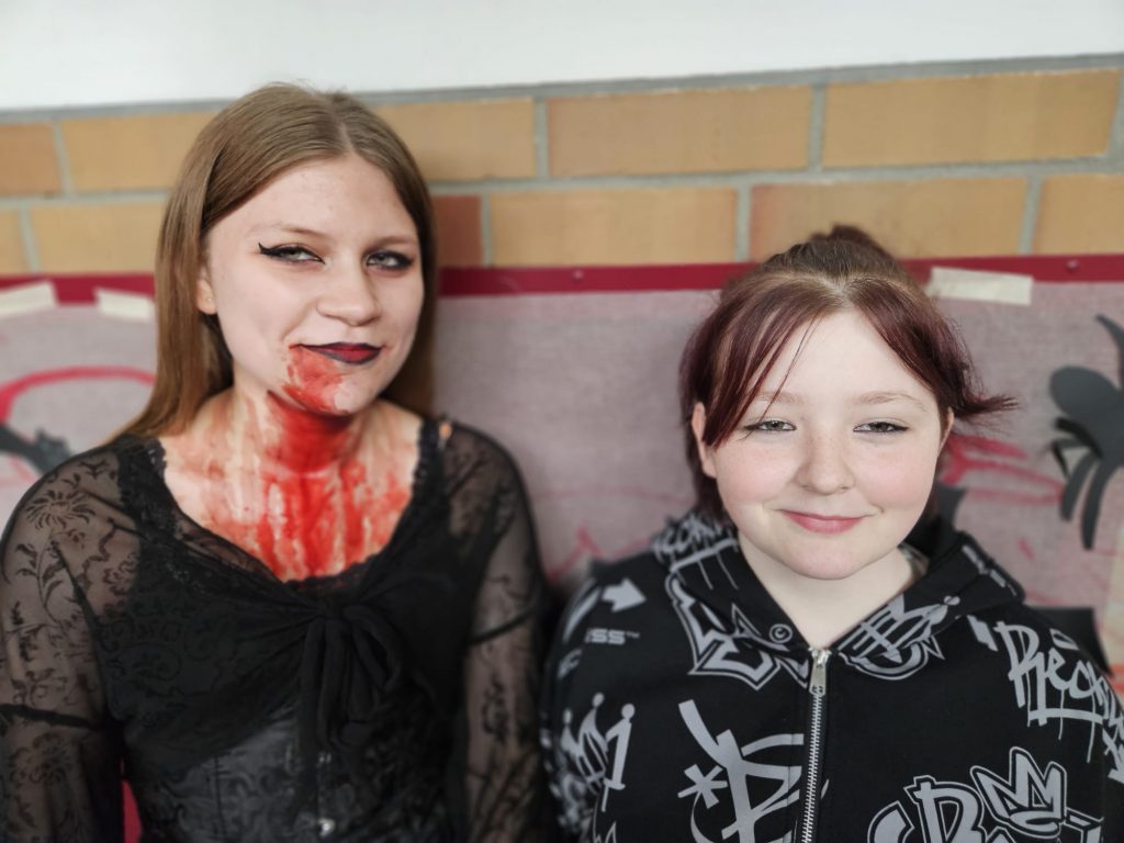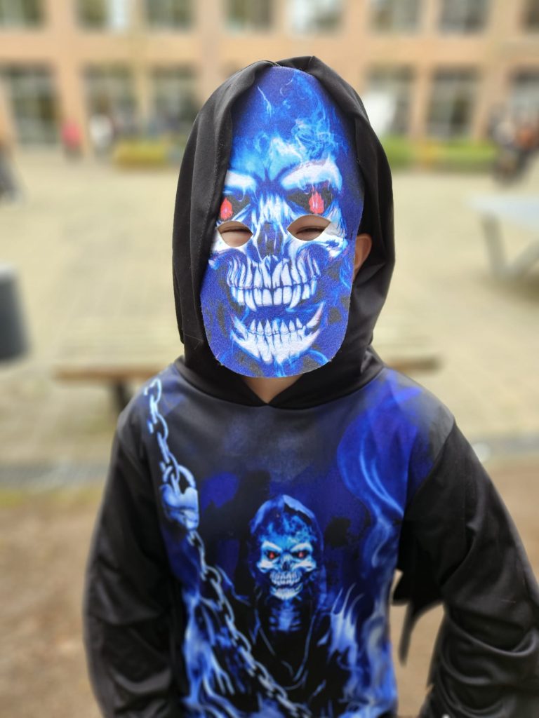 Heute ist Halloween und unsere Schüler haben sich dem Anlass entsprechend in gruselige Outfits geworfen. Von Blutrünstig bis Hexerei war alles vertreten. In Sachen Makeup und Kostüm konnte man liebevolle Detailarbeit und künstlerisches Talent entdecken.