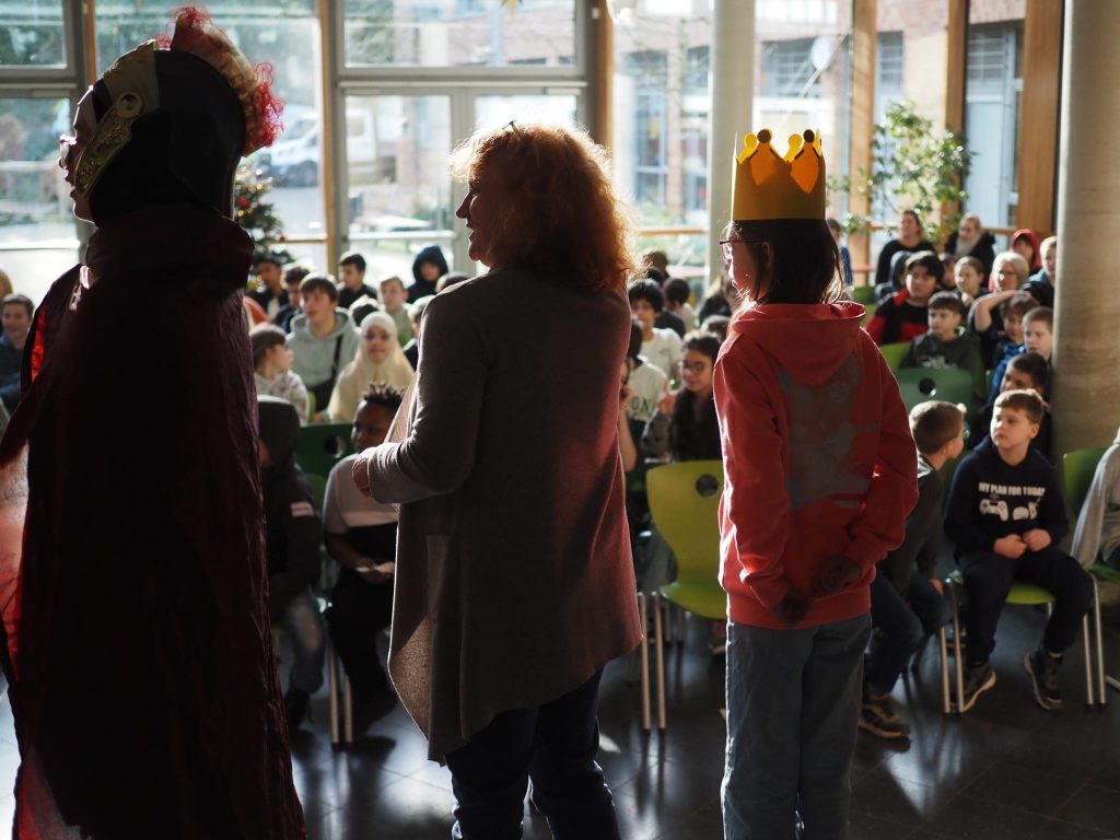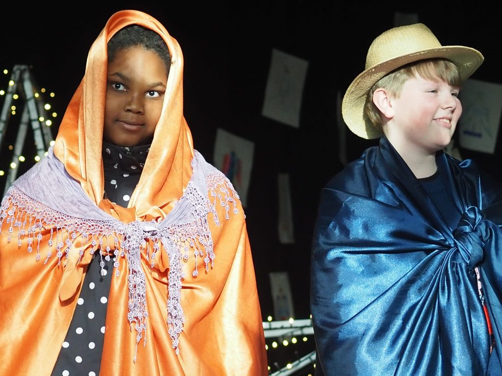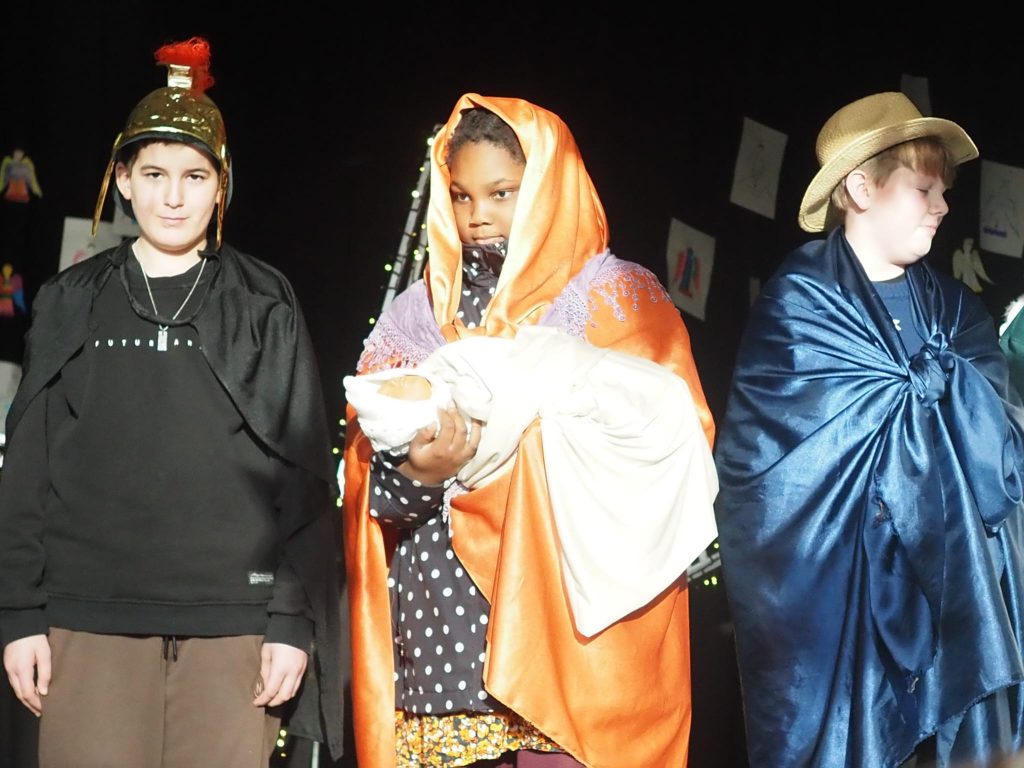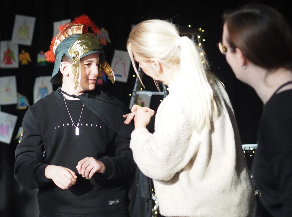 Für das Krippenspiel durften sich die Schüler als Statisten zur Verfügung stellen und wurden mit der entsprechenden Kleidung in ihre Rolle versetzt.