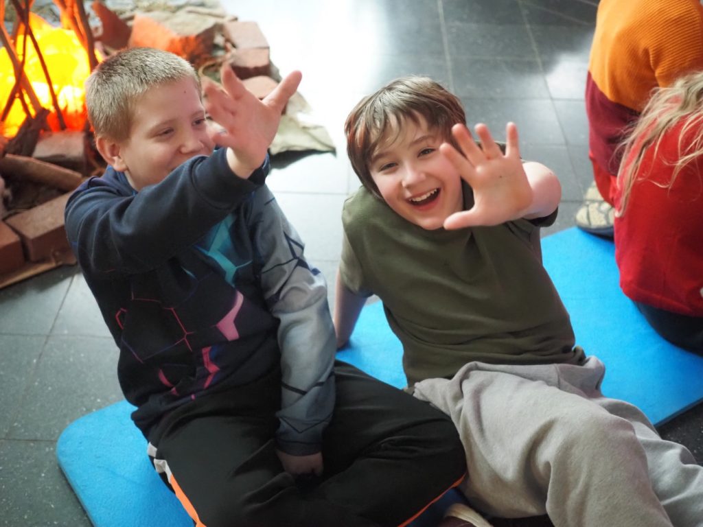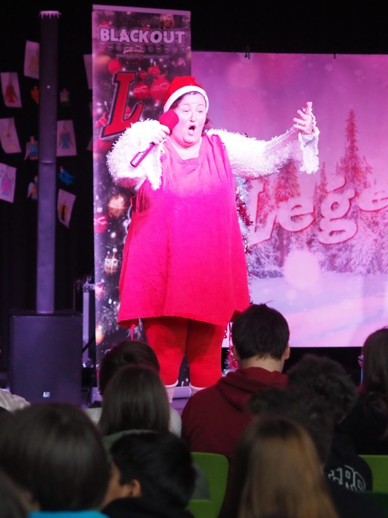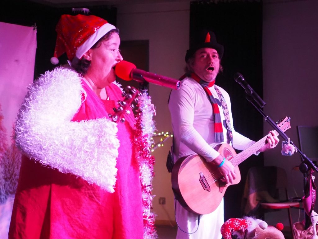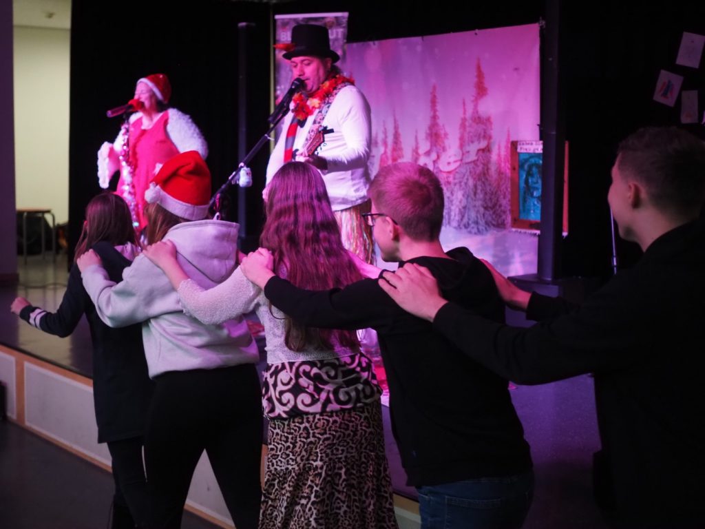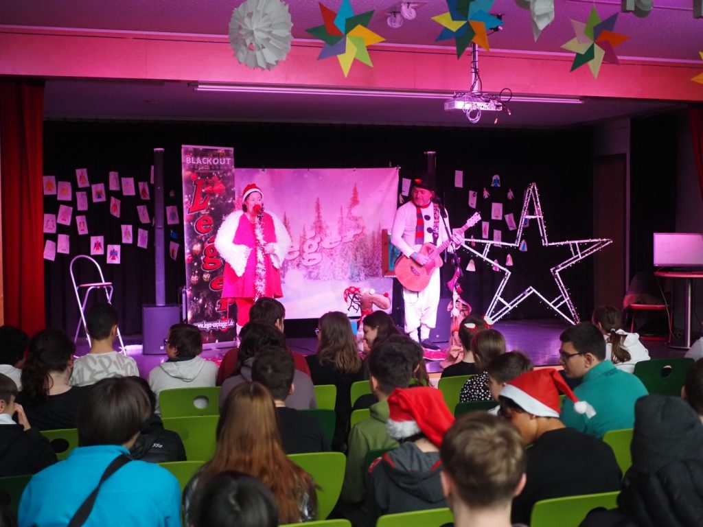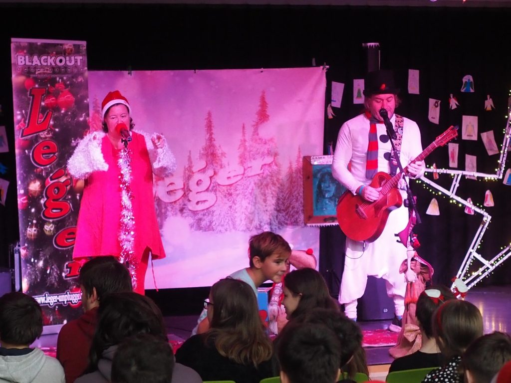 Das Musikduo LEGER hatte wieder Zeit für uns und trumpfte auf der Bühne mit einer Vielzahl unterschiedlicher Weihnachtslieder auf. Der Funke sprang schnell über und es dauerte nicht lange, bis sich die ersten Kinder durch das Forum bewegten, tanzend, klatschend oder in Form einer langen Weihnachtspolonaise. Ob auf deutsch, auf englisch oder auf spanisch gesungen wurden war egal, Hauptsache die Melodie und der Rhythmus stimmten.