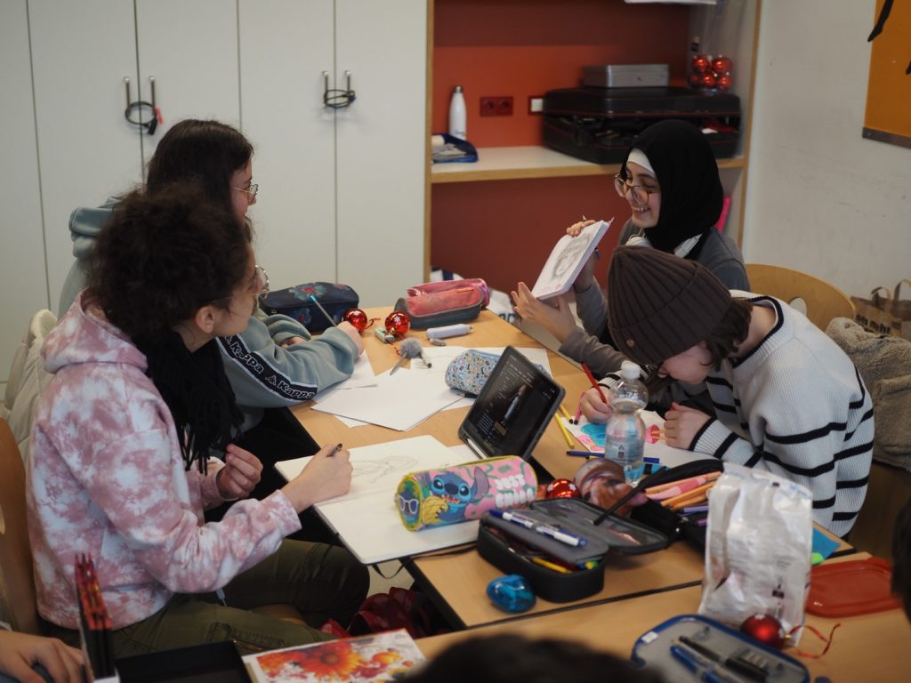 Für die Schüler, die dem Trubel nicht so gerne beiwohnen, hatte sich unsere SV etwas Besonderes einfallen lassen. Man konnte als ruhiges Angebot entweder die Leseecke in der Bibliothek aufsuchen oder fürs Malen und Zeichnen unseren Streitschlichterraum. Einige Schüler nahmen das Angebot dankend an.