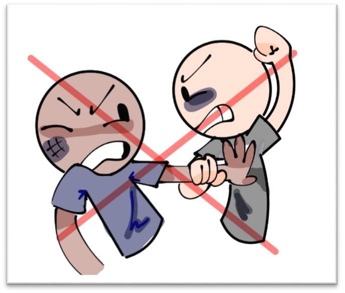Alle sprechen freundlich und wertschätzend miteinander. Schimpfwörter und Beleidigungen sind verboten!