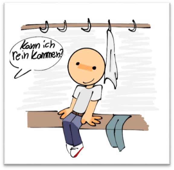 Erwachsene betreten die Umkleide nur in Notfällen und nach Anklopfen und kurzer Absprache.