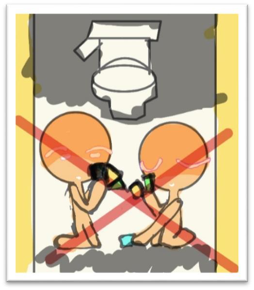 Toiletten sind kein Aufenthaltsort. Jeder hat das Recht in Ruhe die Toilette zu benutzen. Niemand stört oder kommt ungebeten hinzu. Jeder geht alleine!